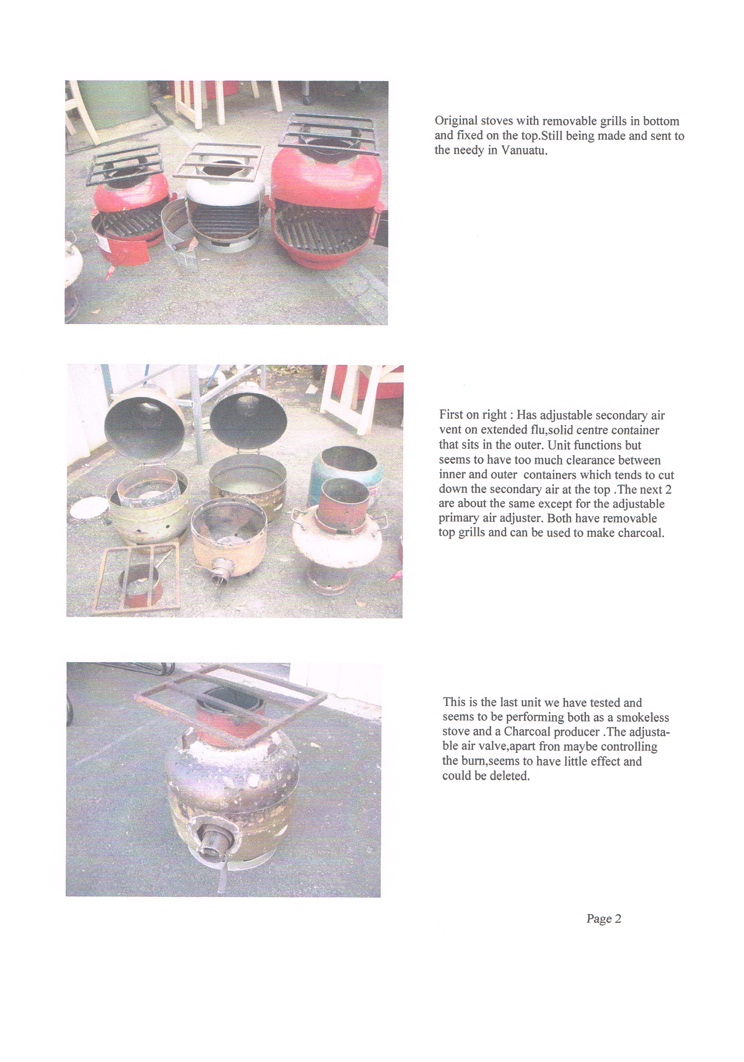 The Tin Shed Rotary program in Labardore, Goldcoast, Queensland Australia has been making Wood gas stoves out of old gas bottles and shipping them to Vanuatu. The last picture is the people of Vanuatu with their stoves.