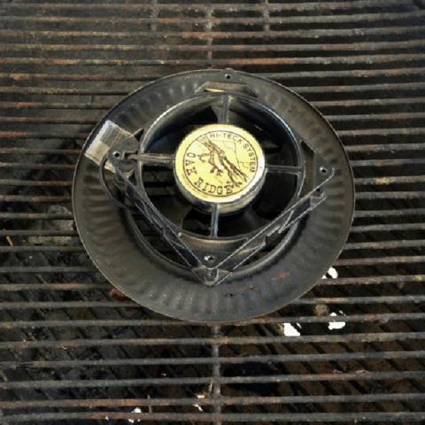 Dimensions: Currently one size, but size can be easily changed: Height: 19” (48 cm), Square footprint 12 x 12” (300 x 300 mm); Fuel cylinder height 14 “ (36 cm) with diameters from 5 to 7” (12 to 18 cm).