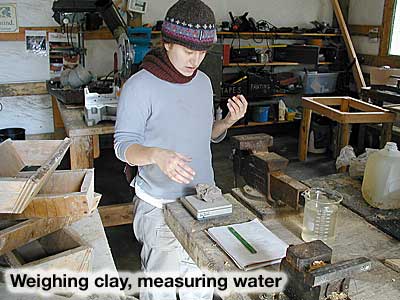 | 5: Mixing liquified clay and vermiculite | 6: Filling molds |