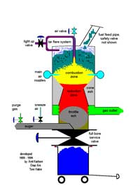 The Basintuthu Stove (pronounced baa-sin-doo-too, "makes fire from smoke") is a stove designed to burn small diameter wood and twigs efficiently, combining preheated primary air, preheated secondary air and secondary combustion. This means that nearly all the available heat contained within the biomass fuel can be liberated. It also means there there is less smoke, particulate matter and Carbon Monoxide (CO) emitted, compared with most other stoves and open fires. |